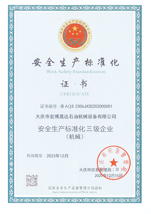 Safety production standardization certificate